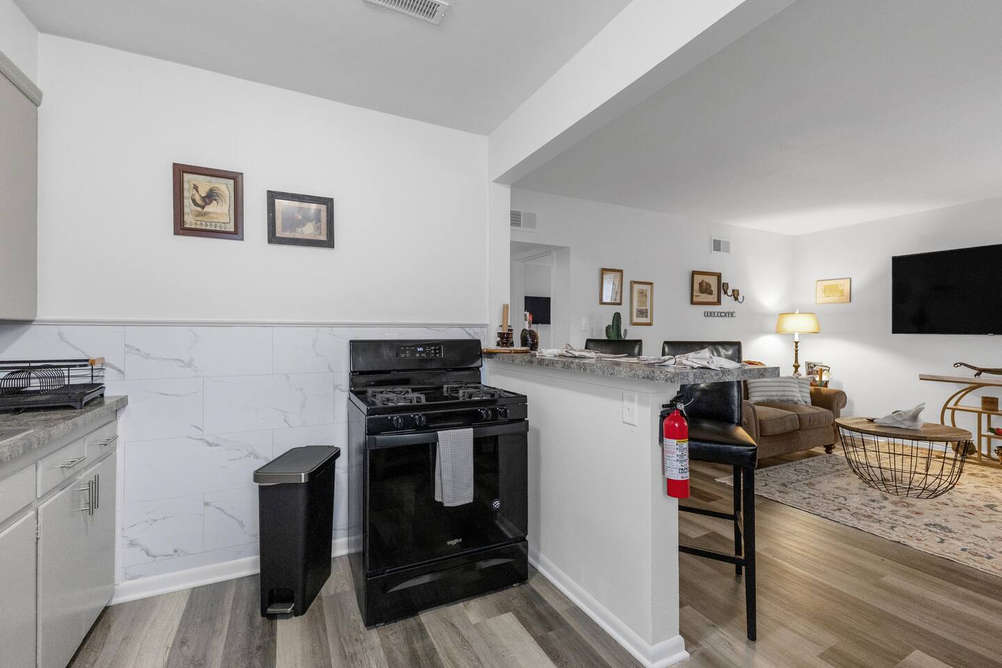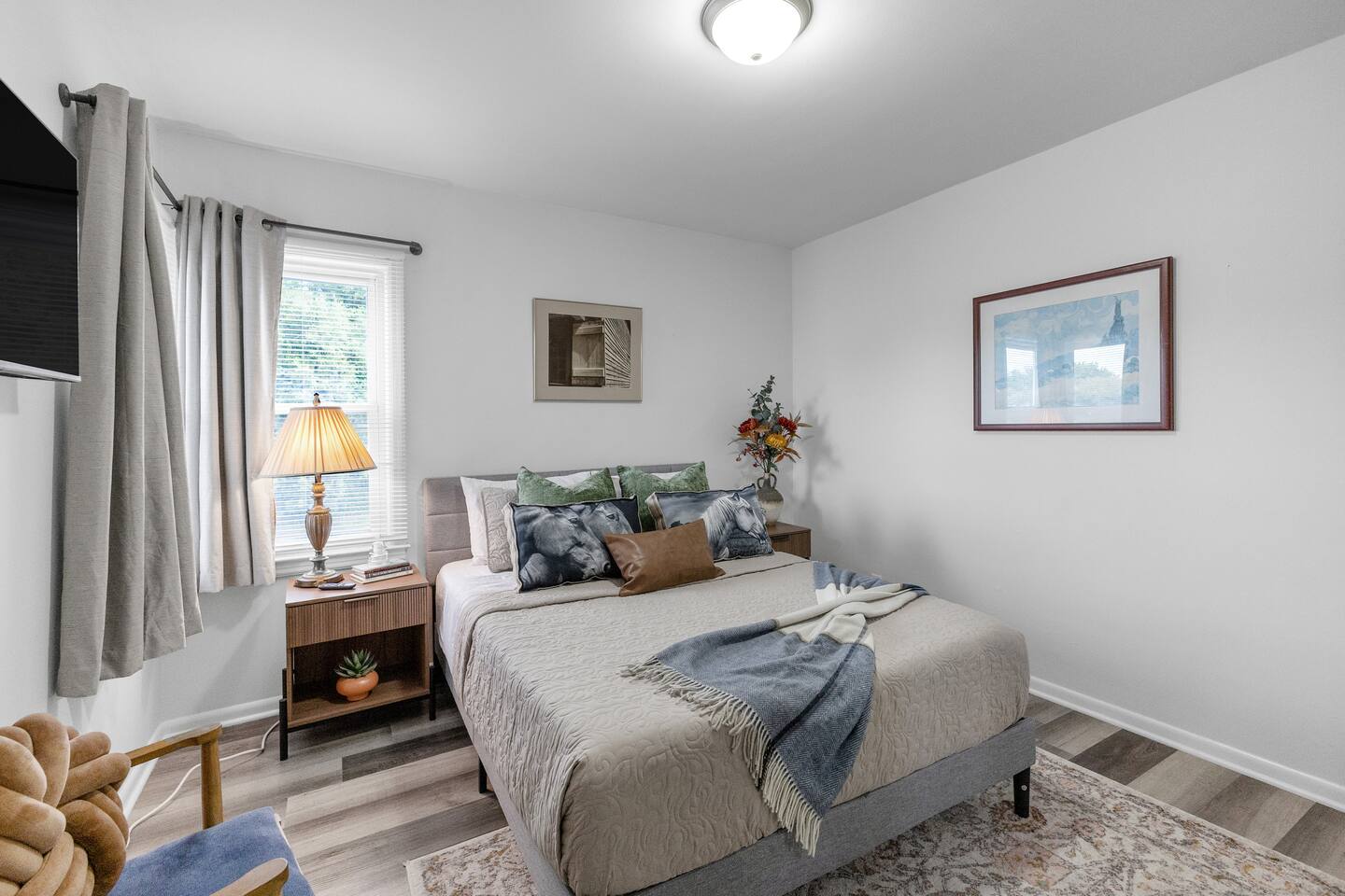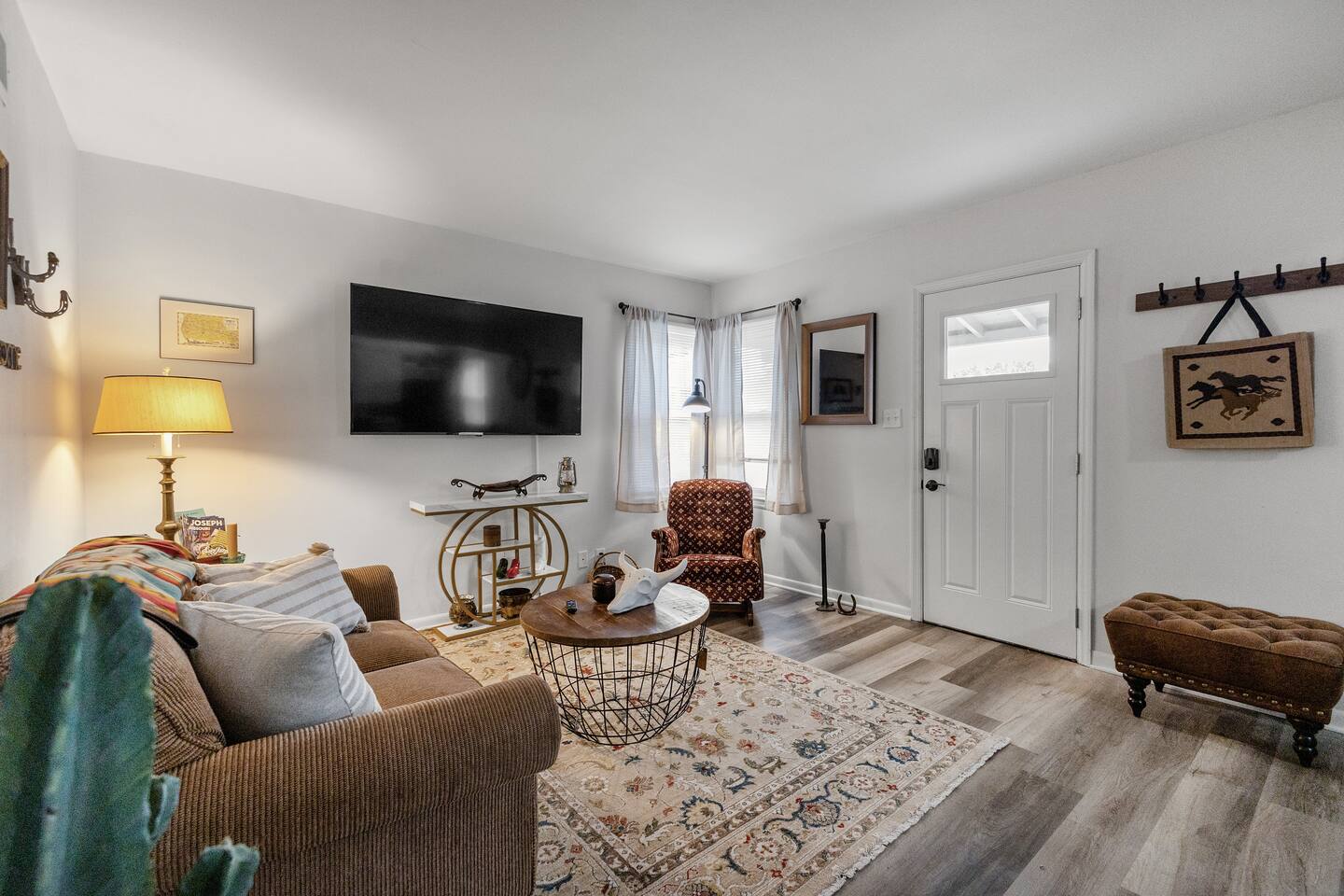 Modern 1BR/1BA duplex with blue door charm and a nod to St. Joseph’s Pony Express history. Quiet neighborhood near Belt Hwy, Mosaic Hospital, and downtown. Enjoy fast fiber WiFi, smart TVs in bedroom and living room, in-unit laundry, and a relaxing porch. Full kitchen with multiple coffee options. Pet and kid friendly, ideal for traveling professionals or visitors wanting comfort and local character.