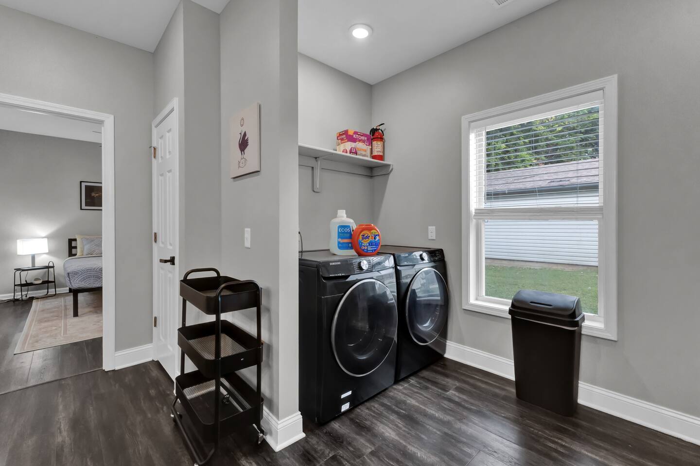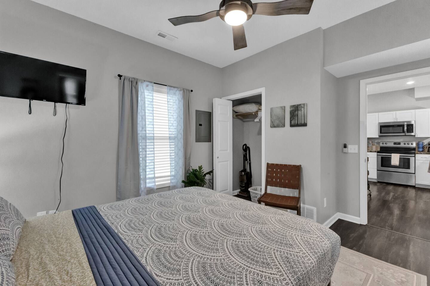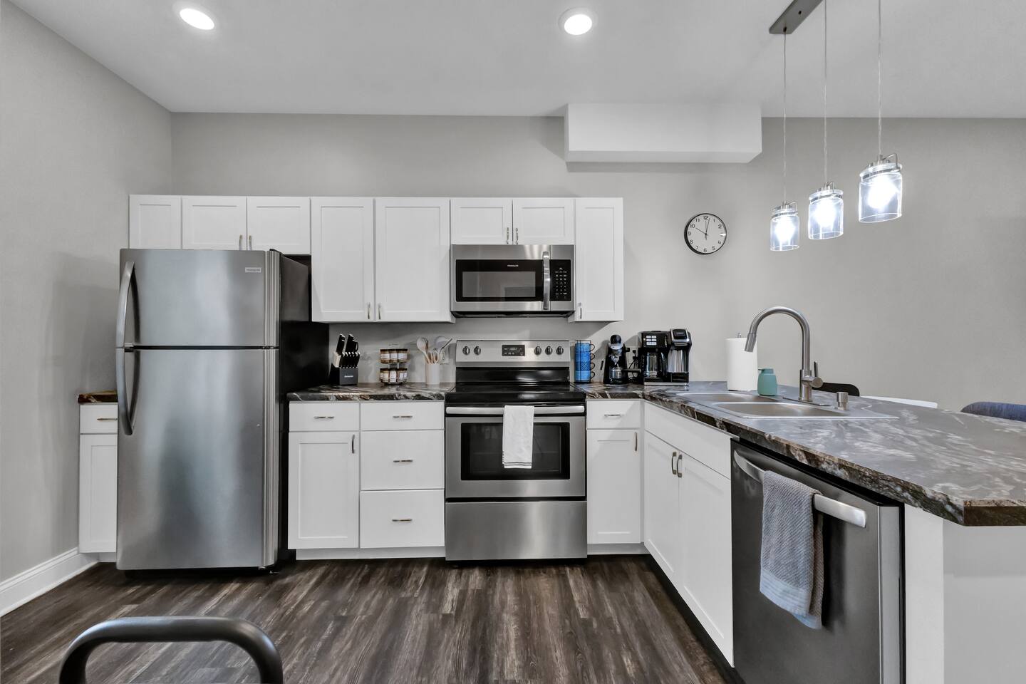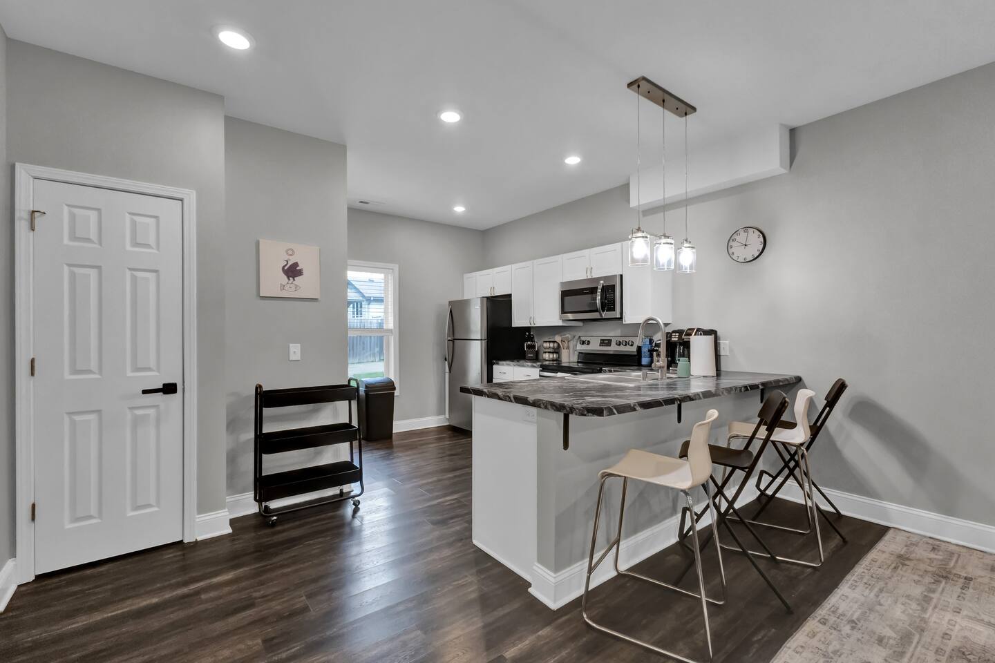 This is an apartment-style building with multiple private units, each with its own entrance. Parking is available both on and off street, is not assigned, and there is plenty of room for multiple vehicles. The neighborhood is residential and generally quiet, though you may hear normal sounds of daily life, including kids playing outside at times. Each unit includes private, in-unit high-efficiency laundry, smart entry locks for self check-in, fiber internet, and a well-equipped kitchen designed for real cooking. Pets are welcome, and there is a small open space across the lot that works well for quick walks. These units were with comfortable furnishings and thoughtful details throughout. While they aren’t party spaces, they are well suited for guests who appreciate a clean, calm, well-appointed place to relax, work, or settle in for a few days or longer.