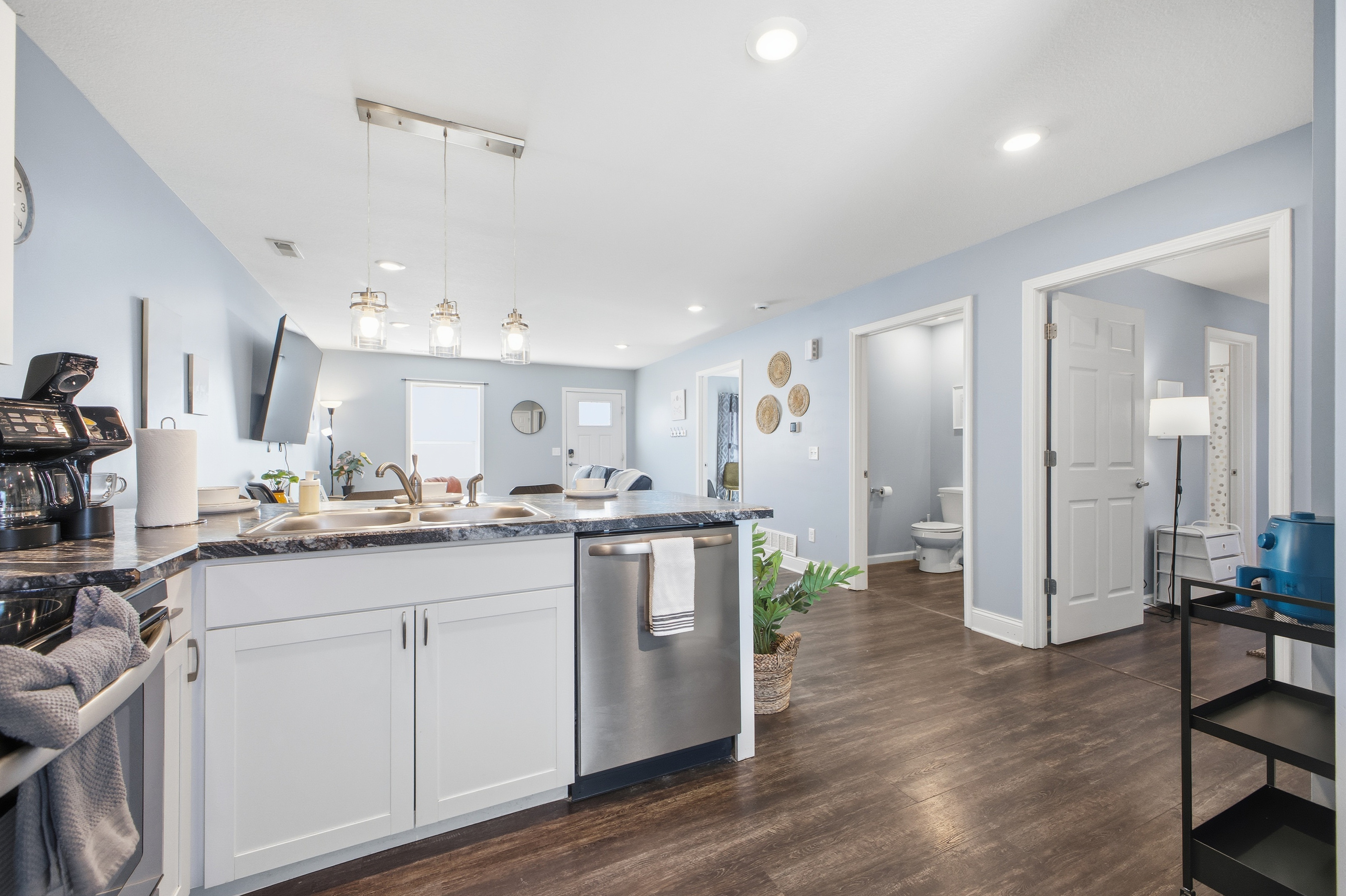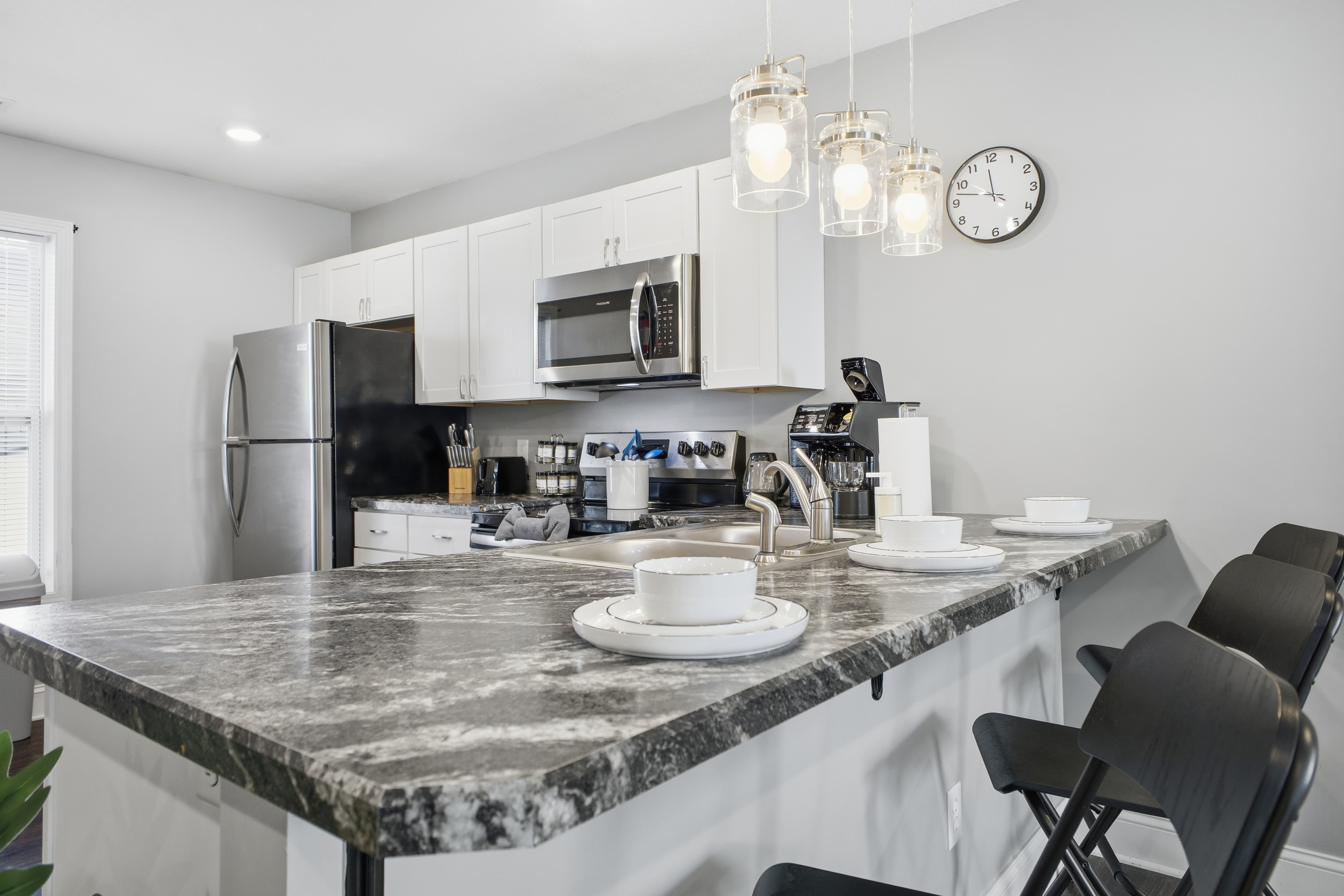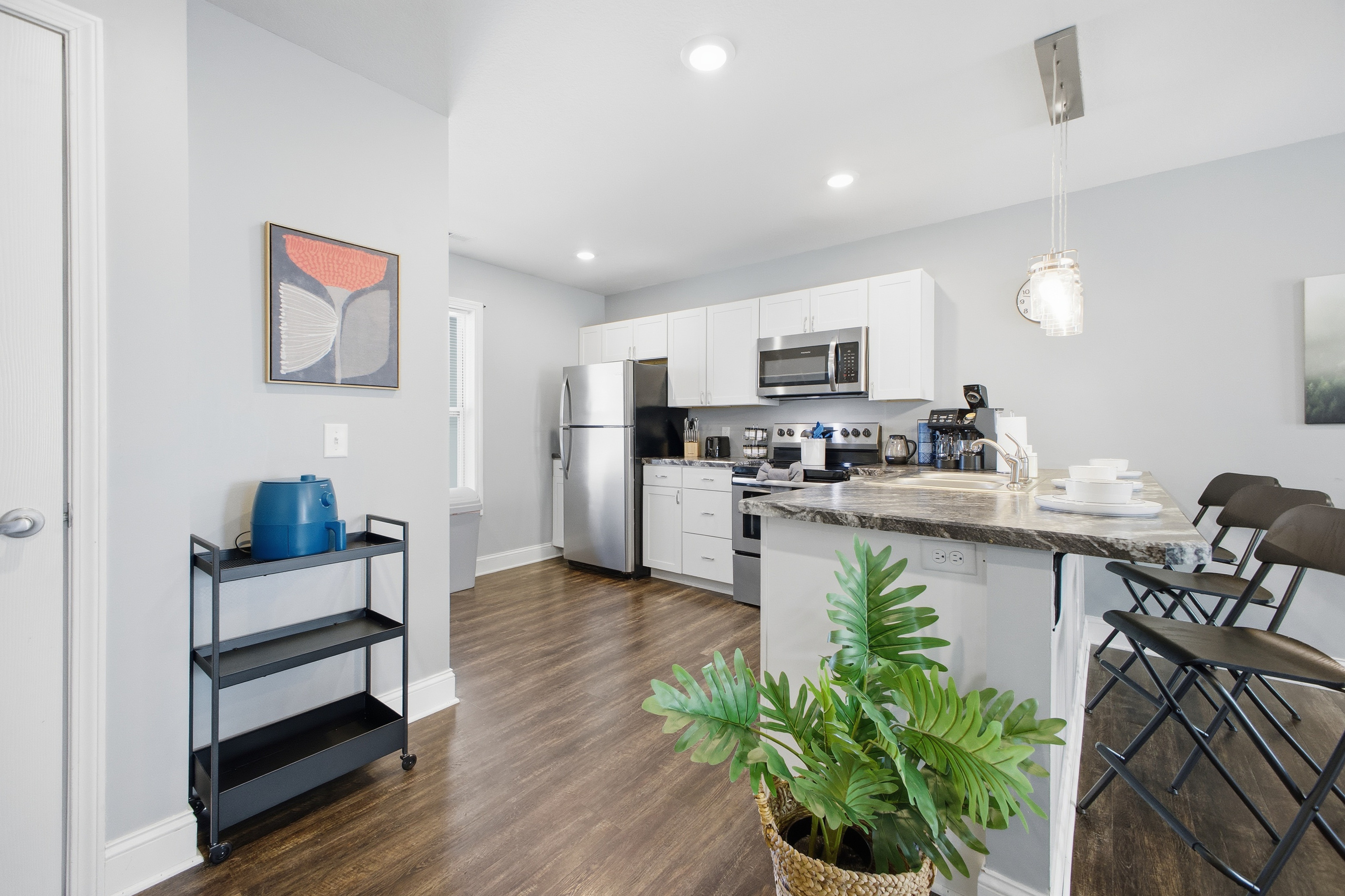 This is an apartment-style building with multiple private units, each with its own entrance. Parking is available both on and off street, is not assigned, and there is plenty of room for multiple vehicles. The neighborhood is residential and generally quiet, though you may hear normal sounds of daily life, including kids playing outside at times. Each unit includes private, in-unit high-efficiency laundry, smart entry locks for self check-in, fiber internet, and a well-equipped kitchen designed for real cooking. Pets are welcome, and there is a small open space across the lot that works well for quick walks. These units were intentionally finished above the typical standard for this area, with comfortable furnishings and thoughtful details throughout. While they arenβt party spaces, they are well suited for guests who appreciate a clean, calm, well-appointed place to relax, work, or settle in for a few days or longer.