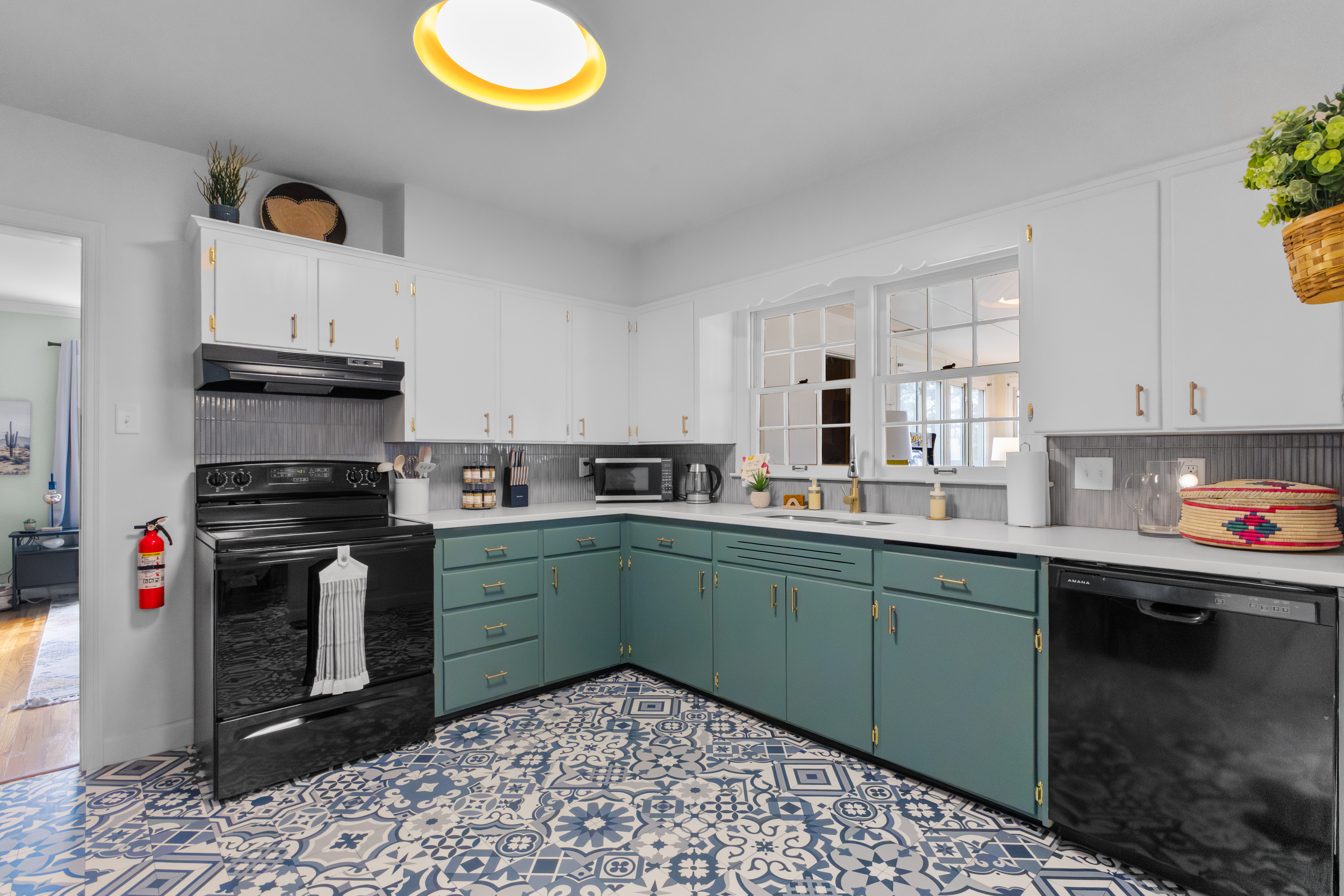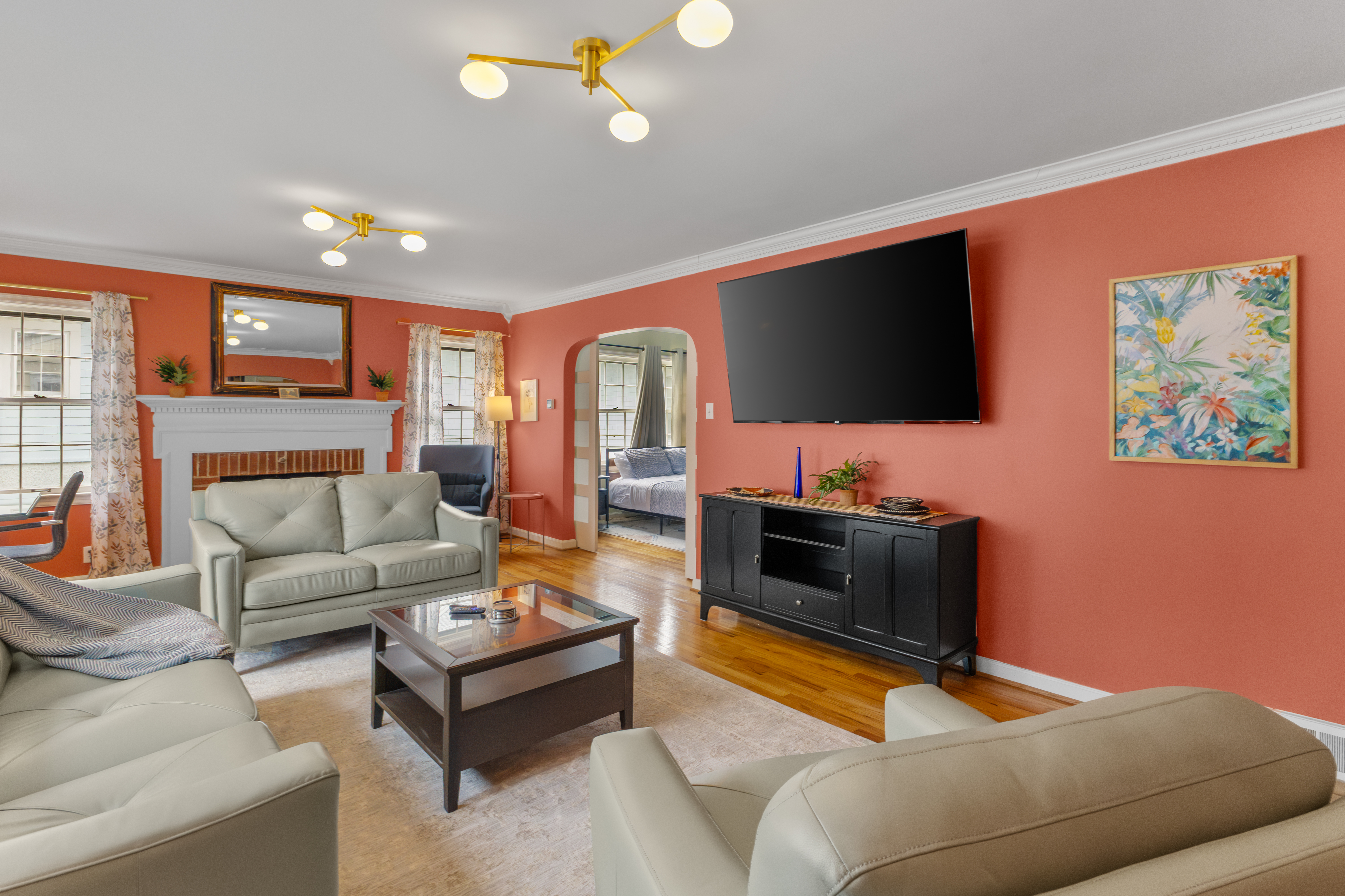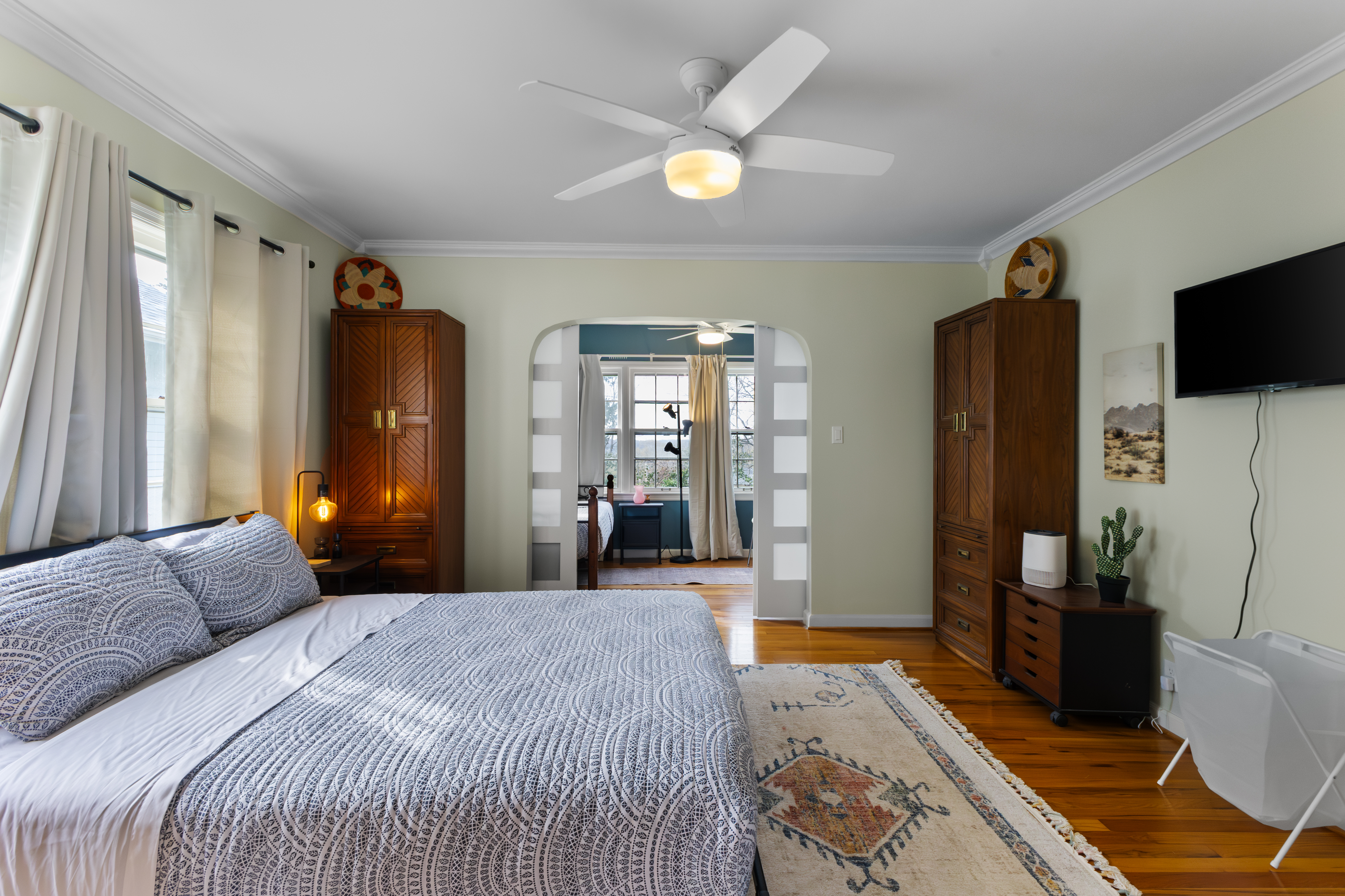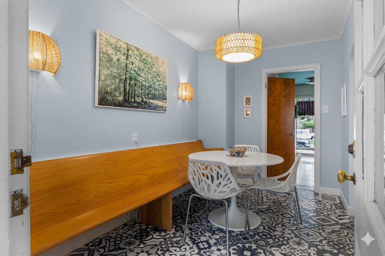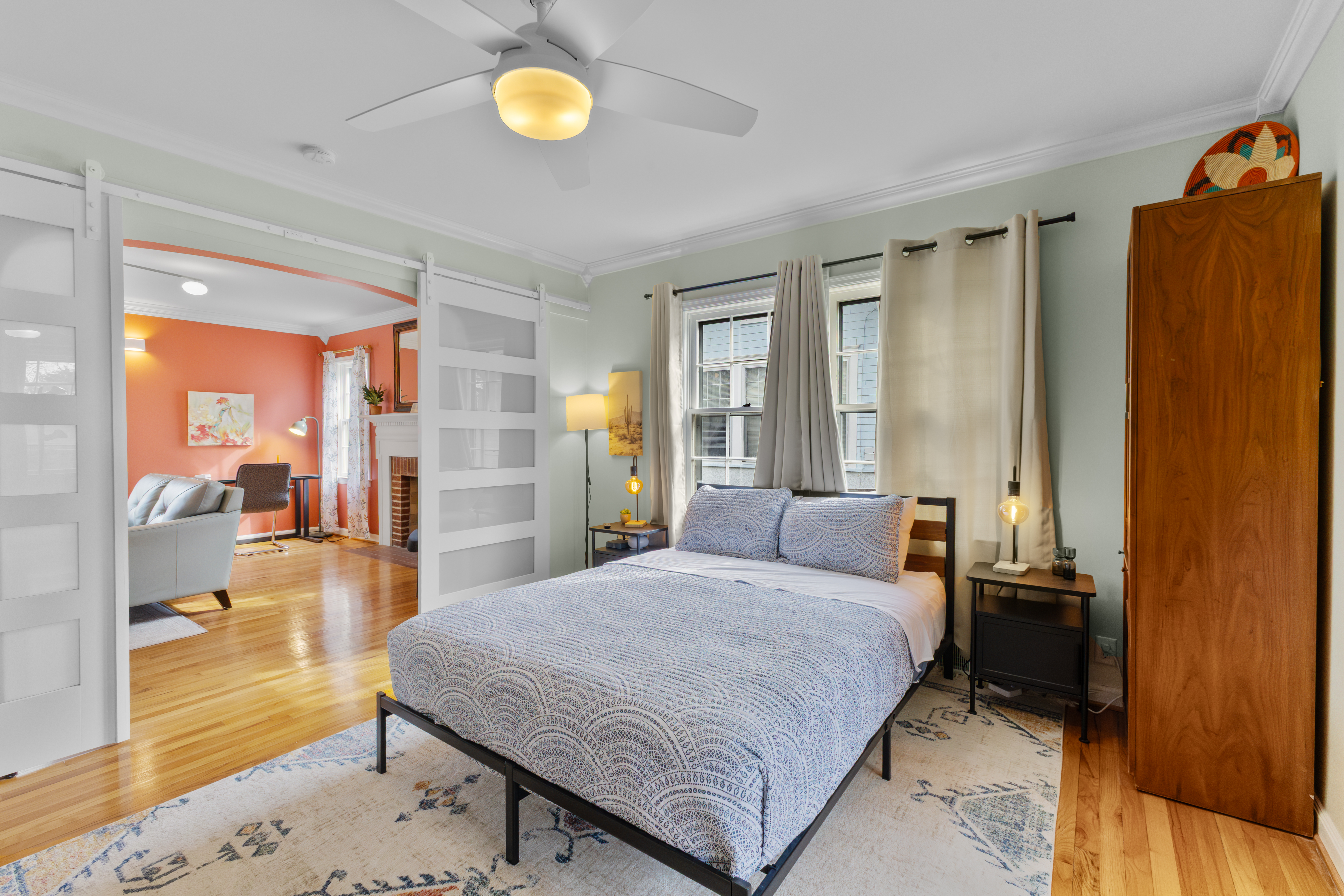 This is a unique, character-filled split-level home in a quiet residential neighborhood. Stairs are required to enter the property, and the layout includes bedrooms on multiple levels. Garage and driveway parking are accessed from a side street approximately 200 feet from the front entrance rather than directly in front of the home. The house is on a fairly busy thoroughfare. The fenced backyard is great for guests traveling with pets (please review house rules before booking). The arcade game is free-play and available for guest enjoyment.