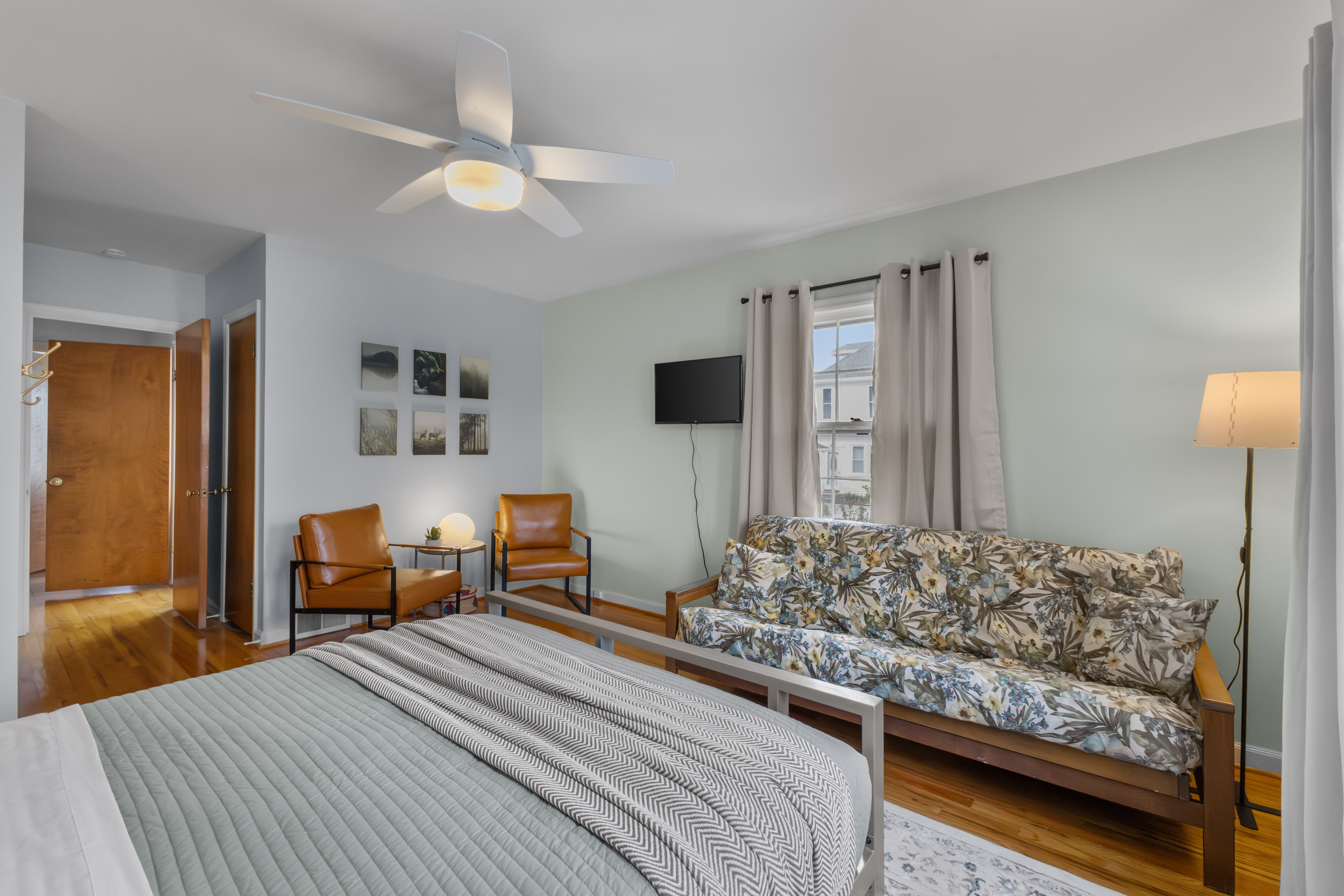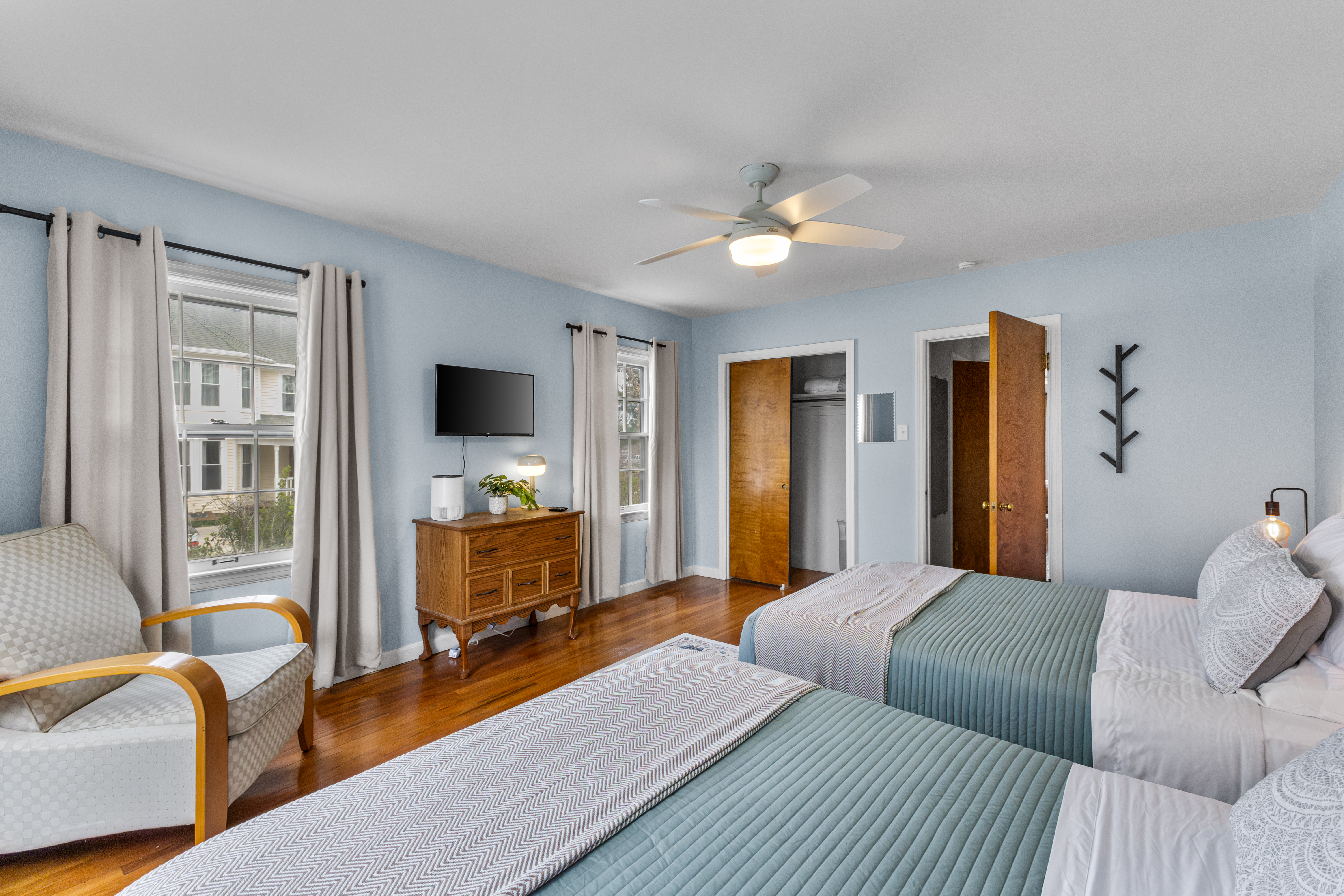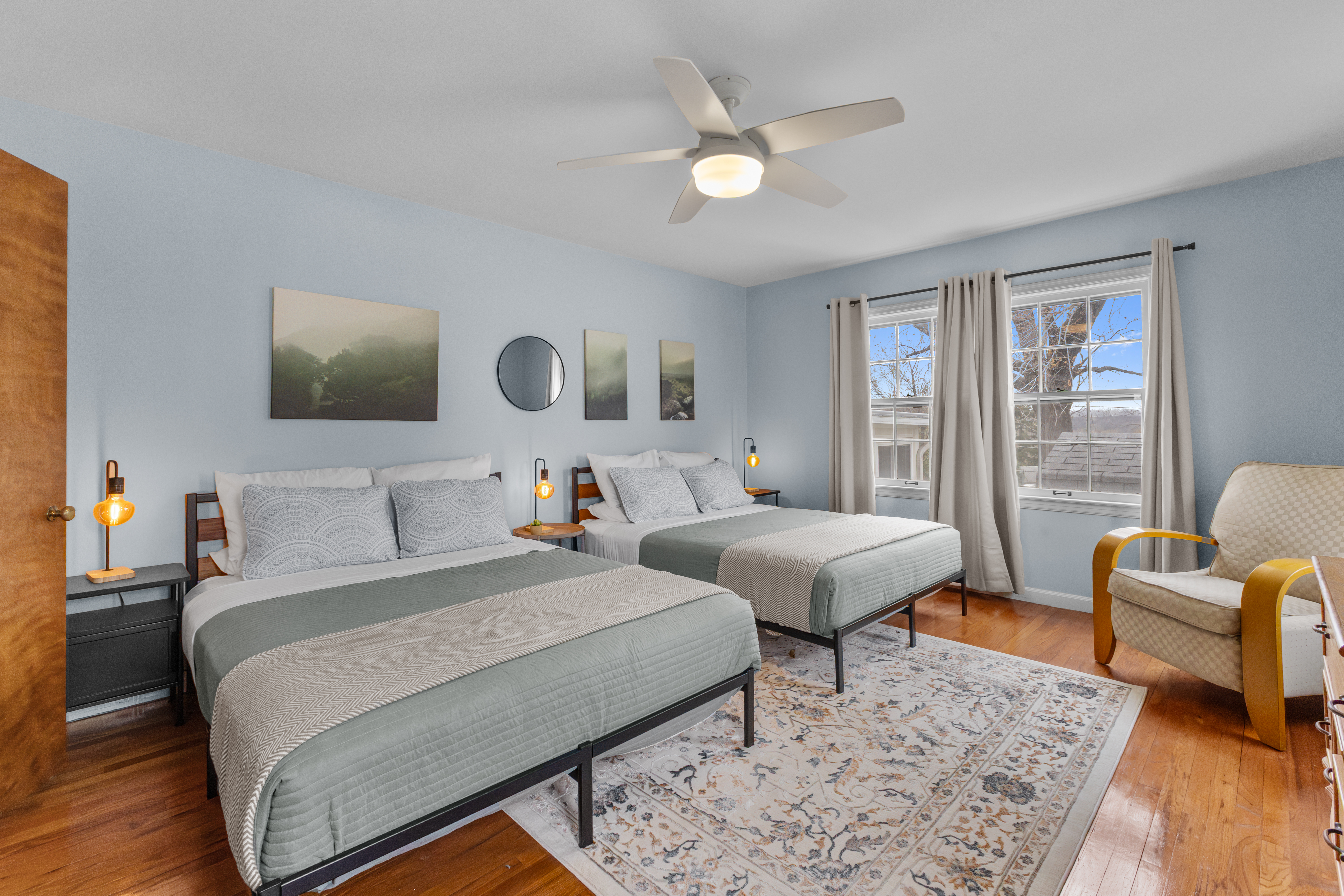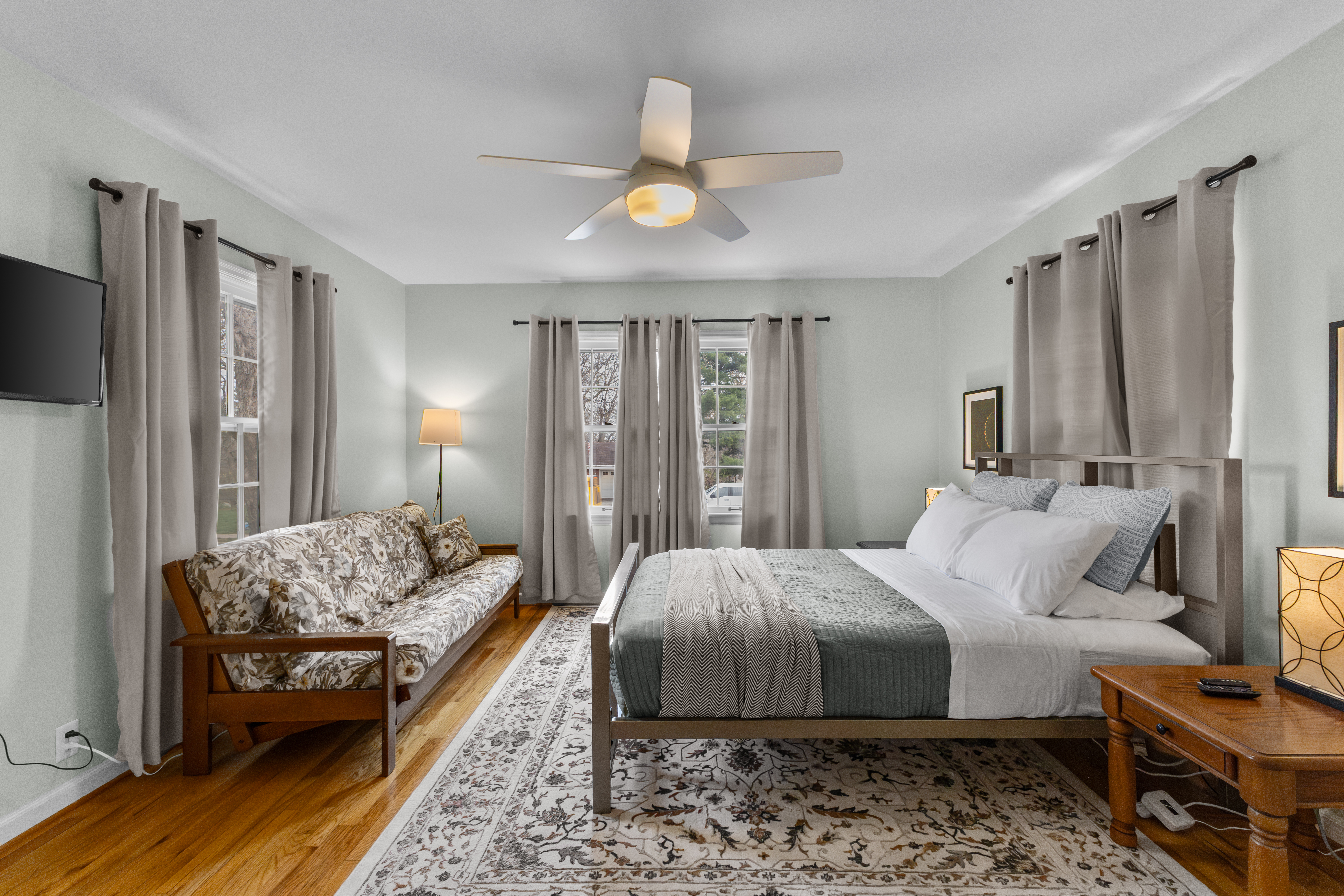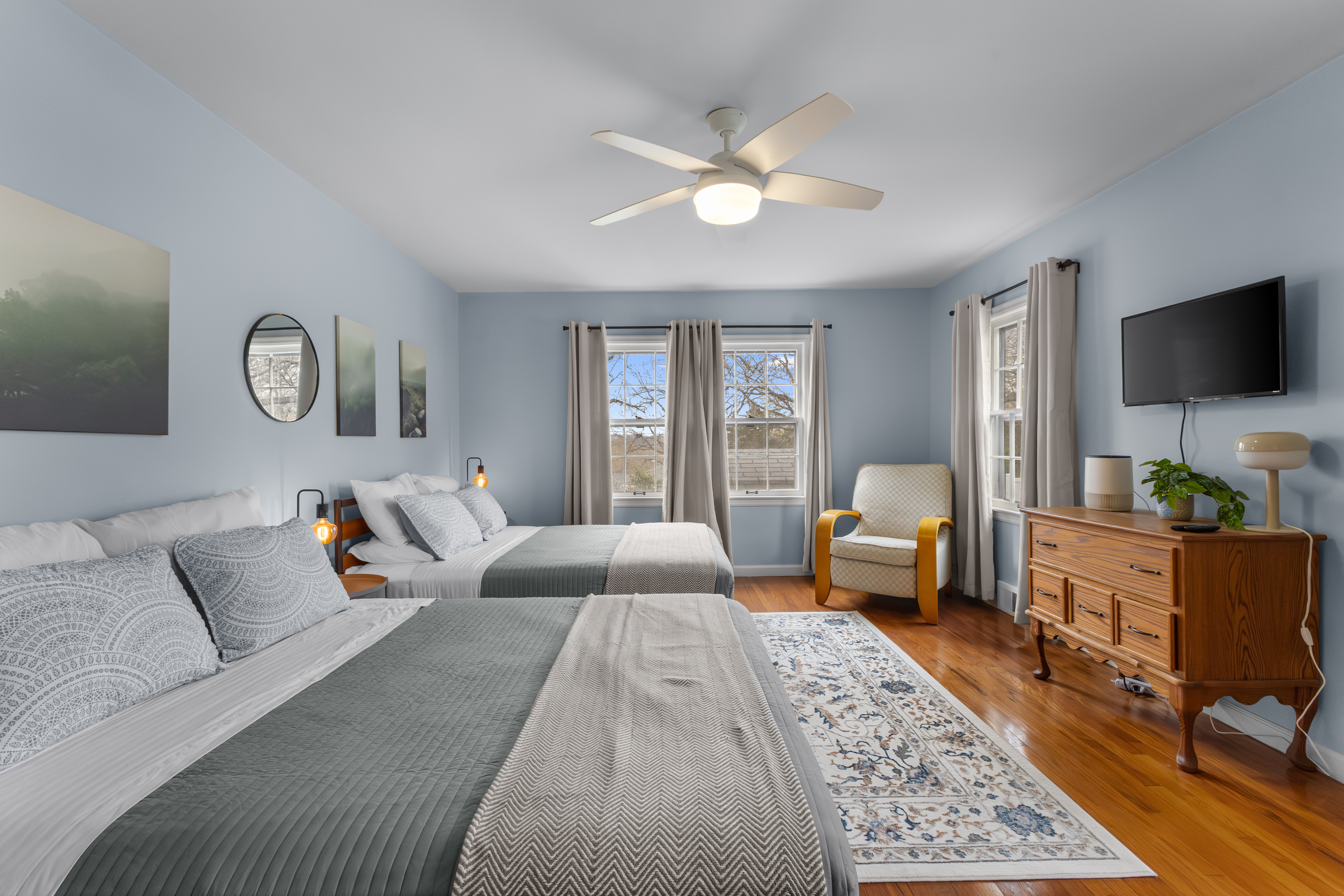 Sleeps 12 comfortably Bedroom 1 – 1 Queen + 1 Futon Bedroom 2 – 2 Queens Bedroom 3 – 1 Queen Bedroom 4 – 1 Daybed + 1 Inflatable Mattress 2 Full Bathrooms Layout Split-level home 2 bedrooms on the main level Additional bedrooms on lower level Stairs required to enter the home Features Fully stocked kitchen with updated flooring Sunroom/game room with free-play Pac-Man arcade Smart TVs 200 Mbps fast WiFi Fenced backyard Back deck with sunset views Washer & dryer Pet friendly Parking 1 garage space 2 driveway spaces Off-street parking is approximately 200 feet from the front entrance (side street access)